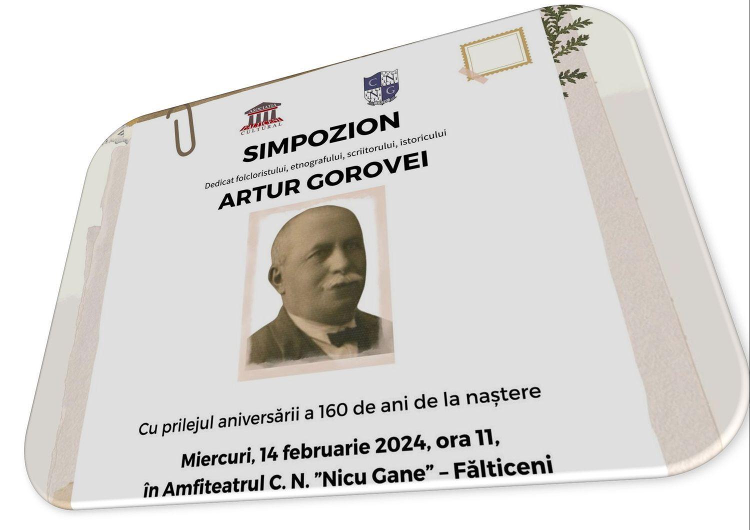 Asociatia Falticeni Cultural va invita la SIMPOZIONUL dedicat folcloristului, etnografului, scriitorului, istoricului ARTUR GOROVEI organizat cu prilejul aniversării a 160 de ani de la naștere.