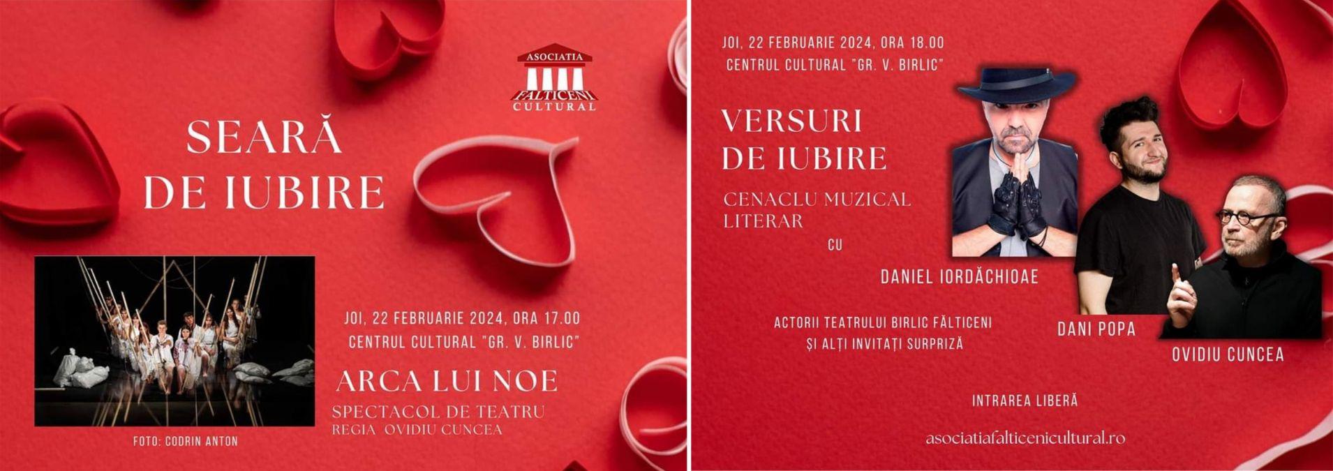 Asociația Fălticeni Cultural pregătește o seară specială pentru iubitorii de artă și cultură, joi, 22 februarie 2024. Evenimentul, intitulat „Seară de Iubire”, va avea loc la Centrul Cultural „Gr. V. Birlic” din Fălticeni.