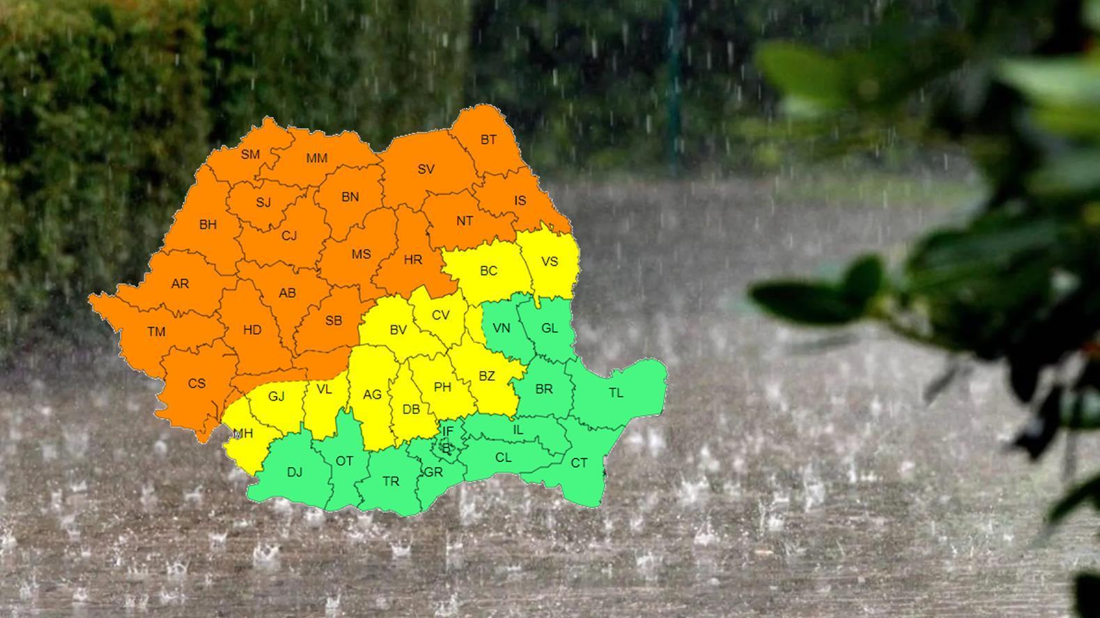 COD PORTOCALIU METEO, în intervalul 10 iunie, între orele 15:00-23:00, cu perioade de instabilitate atmosferică accentuată.